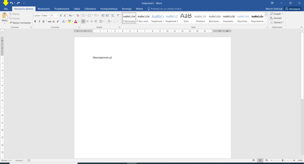 Pierwszym krokiem jest stworzenie dokumentu w Wordzie, nie muszę chyba pokazywać jak to zrobić. Zatem możemy przejść do następnego kroku.